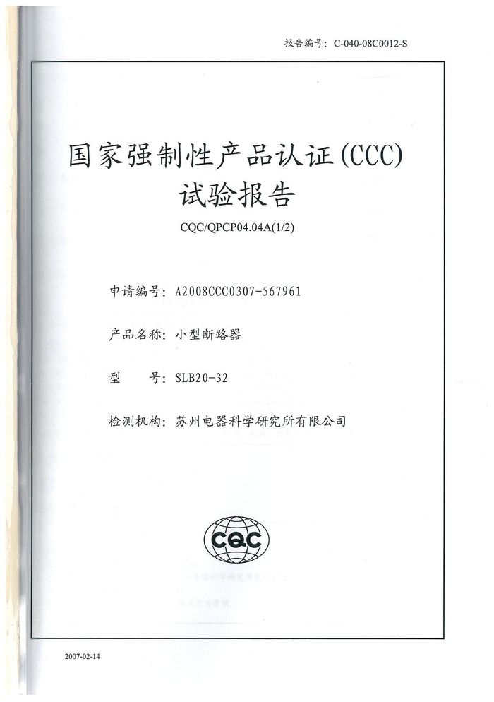 SLB20-32小型斷路器資質證書