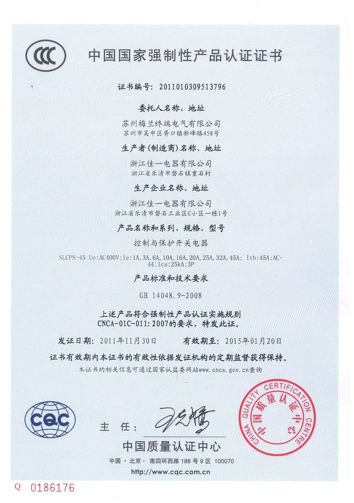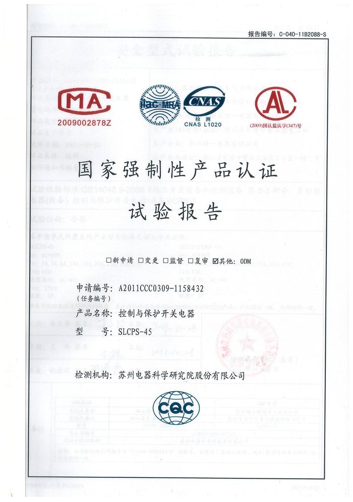 SLCPS-45控制與保護開關資質證書